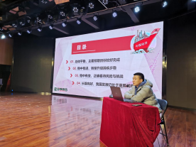 专题团课上,崔彤彤书记从“总体平稳,主要预期目标较好完成”,“稳中有进,转型升级蹄疾步稳”,“稳中有变,正确看待风险与挑战”,“长期向好,我国发展仍处于重要战略机遇期”四个方面来讲述中国经济的行稳致远。