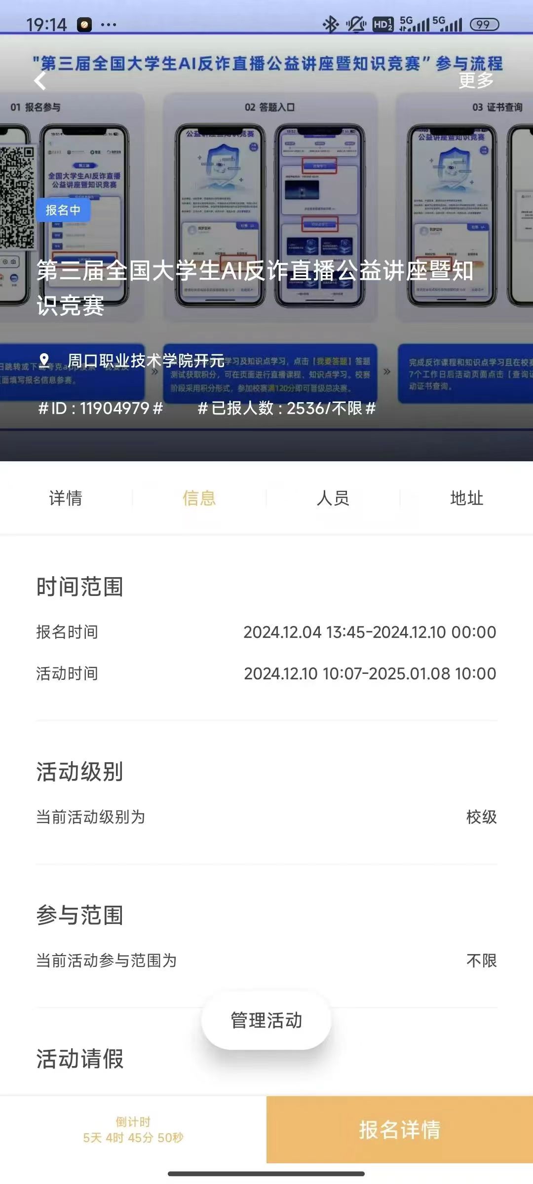 为深入学习贯彻习近平总书记关于打击治理电信网络诈骗犯罪工作的重要指示精神,进一步加强反诈宣传力度,不断提升大学生防骗意识,切实营造全民反诈、全社会反诈的浓厚氛围,向青年学生普及AI换脸、声音合成技术诈骗等新型诈骗手段的识别和应对知识,着力提升广大师生网络安全意识和防护技能,共青团周口职业技术学院委员会联合夸克平台、到梦空间共同开展第三届全国大学生AI反诈直播公益讲座暨知识竞赛。