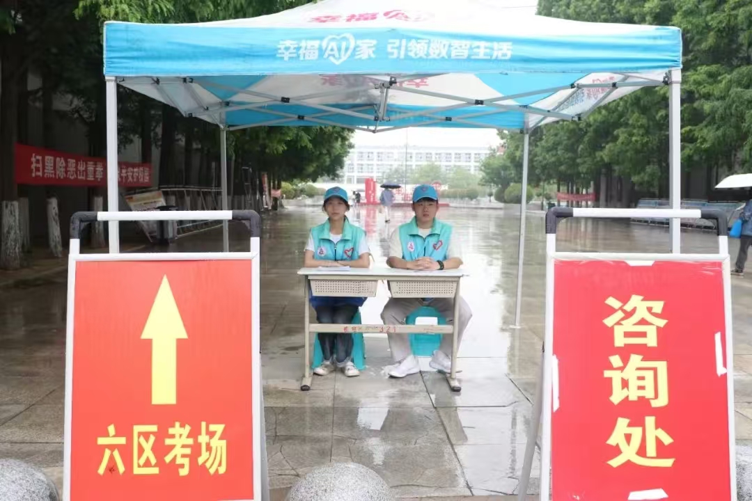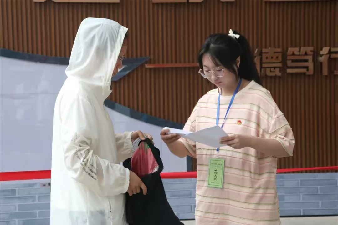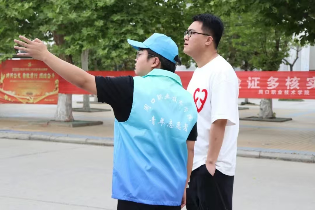 清晨,志愿者们早早到达岗位积极的投入志愿活动中,他们身着马甲,脸上挂着热情的微笑,心怀热忱之心,以认真负责的态度为考生指引方向、查看准考证,耐心地帮助他们快速准确找到考场。他们用无尽的耐心和细致入微的关怀,为每一位考生答疑解惑,让整个考试工作充满了青春的活力与朝气。