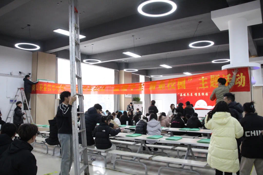 活动还未开始前,志愿者们用心筹备,早早地准备好了充分的饺子食材,并进行分发和摆盘,为活动的顺利开展做好了充分准备。活动现场还拉起了横幅“温暖冬至,情满校园”几个大字格外醒目,为活动增添了浓厚的氛围。