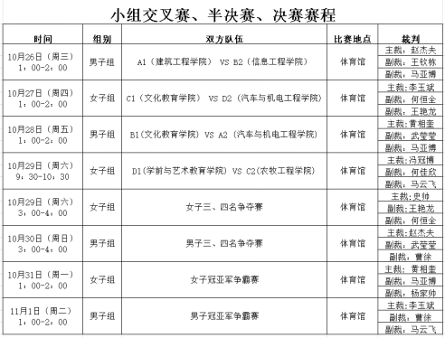 周口职业技术学院第十六届“迎新杯”篮球比赛小组淘汰赛已于10月24日结束,在经过15场比赛后,共有八支球队进入小组交叉赛。 哪些球队可以脱颖而出,通过小组交叉赛,突破半决赛,进入决赛。冠军究竟花落谁家?