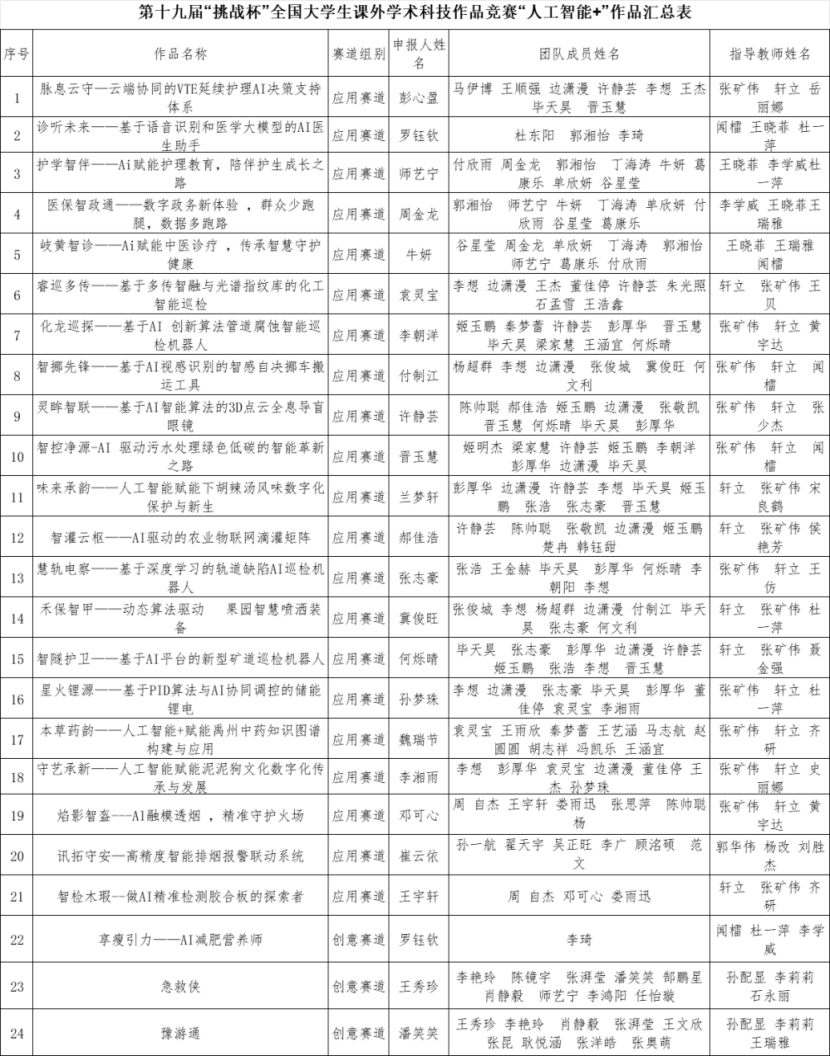 第十九届“挑战杯”全国大学生课外学术科技作品竞赛“人工智能+”专项赛作品推报公示