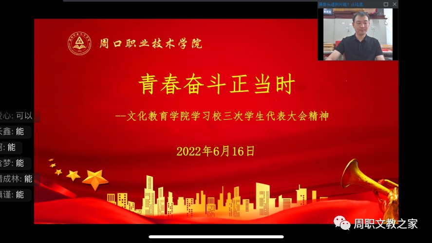 青春奋斗正当时|周口职业技术学院文化教育学院学习校三次学生代表大会精神