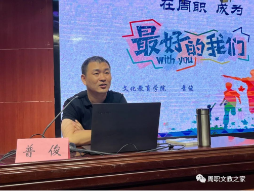 最后,学管办主任普俊以“在周职成为最好的我们”为题对新生进行了入学教育,普俊老师从什么是大学、适应我的大学、我的大学素养、我的大学生活四个方面鼓励全体新同学遵守纪律、勇于拼搏、勤学善思、砥砺奋斗,尽快地适应、融入校园学习生活,希望同学们在周职都能成为最好的我们!