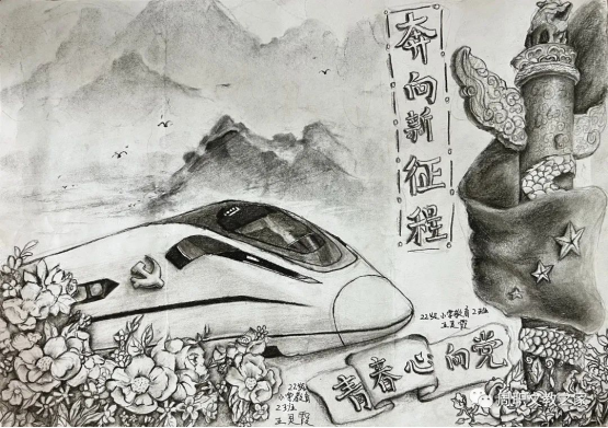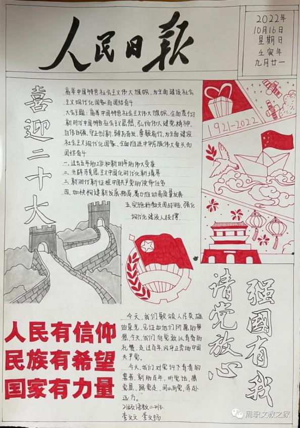 为激发青少年奋进新时代的昂扬斗志和永远跟党走的信念,文化教育学院组织开展以“ 青春心向党,奋进新征程”为主题的手抄报比赛。