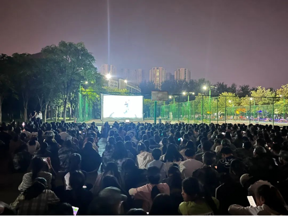 为进一步学习贯彻习近平新时代中国特色社会主义思想,弘扬爱国主义精神、拼搏精神、奉献精神,牢记党的宗旨,9月22日晚,文化教育学院组织23级学生在操场集中观看红色电影《长空之王》。