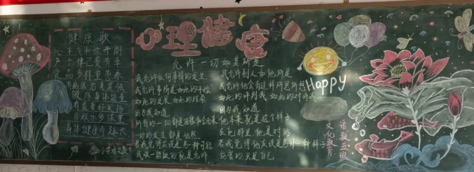 为了全面普及心理健康知识,营造富有创意的班级心理文化氛围,文化教育学院开展了以“健康从‘心’”开始为主题的黑板报创作活动。