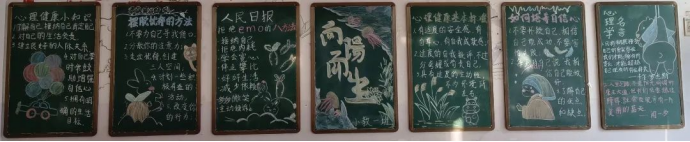 各班广泛搜集素材,出谋划策,一块块构思新颖的黑板报新鲜出炉,这些板报内容丰富深刻,版面设计新颖巧妙,主体突出、色彩和谐,书写规范优美,图画设计富有创意,极具个性。