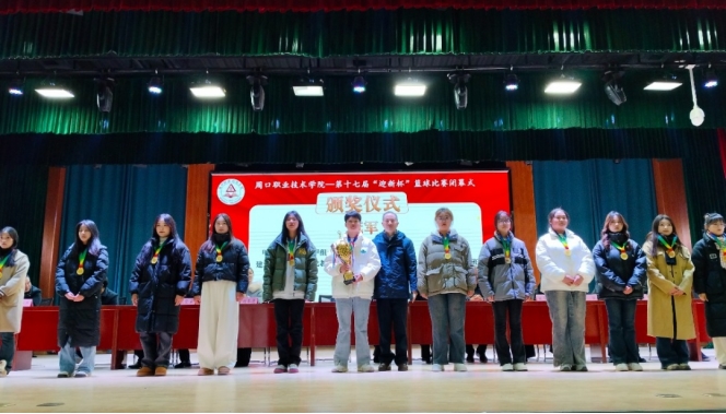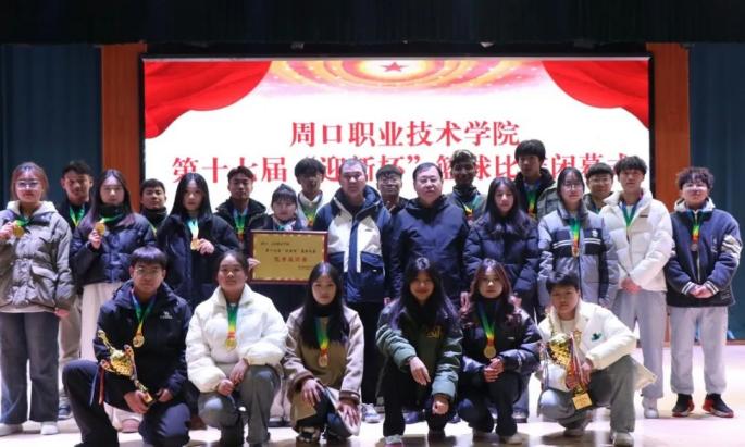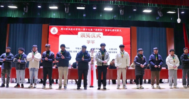 周口职业技术学院第十七届“迎新杯”篮球赛闭幕颁奖仪式于2023年12月21日下午4:00在体育馆举行。文化教育学院党总支书记展贤东、团总支书记普俊及获奖运动员参加此次活动。
