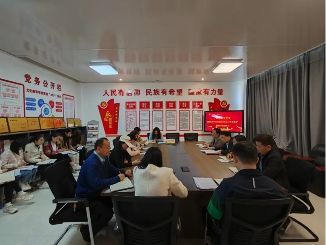 为进一步推进2024届毕业生就业工作落实落细,实现毕业生更充分和更高质量就业,3月29日下午,文化教育学院在五区党员活动室召开2024届毕业生就业创业工作推进会,学院党总支书记展贤东、院长史丽珍、副院长于慧娟、副院长李炯、学管办主任普俊、教管办主任马淼、综合办主任石永丽及各毕业班辅导员参加会议。