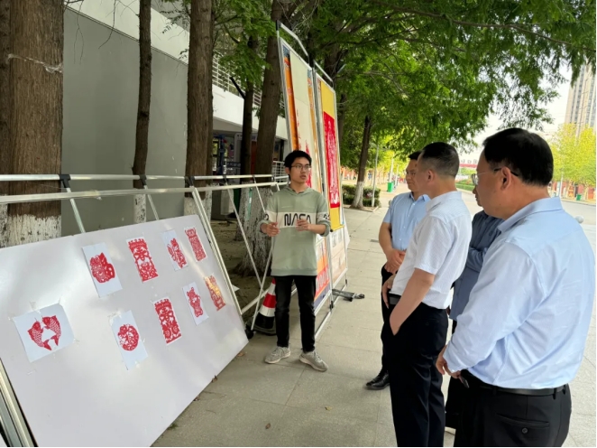 为增强学生对中国优秀传统文化的认同感和自豪感,培养学生的动手能力和审美情趣,2024年4月26日下午,由文化教育学院青鉴文史社承办的第十一届社团文化艺术节系列活动(十七)——“纸载情思,艺展校园”创意剪纸专场活动在开元校区举行。校党委副书记、工会主席郭汝礼,宣传部部长万四新,校投壶比赛游戏规则个人赛书记闻檑,文化教育学院党总支书记展贤东、副院长于慧娟、学管办主任普俊等亲临现场参观指导。