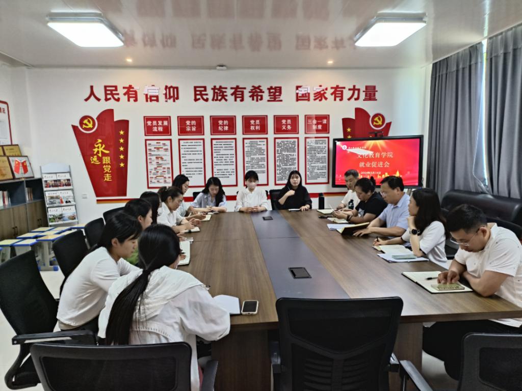 5月14日下午,文化教育学院在五区党员活动室召开2024届毕业生就业工作推进会。我院党总支书记展贤东、院长史丽珍、学管副院长于慧娟、教学副院长李炯、学管办主任普俊、综合办主任石永丽以及全体2022级辅导员参加会议。会议由展贤东主持。