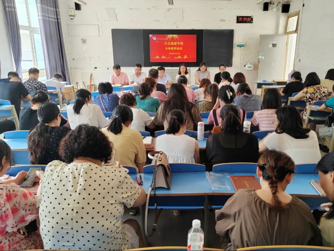 9月10日下午,文化旅游学院在四区4222教室召开2024年秋季学期第一次全体教师会议。本次会议旨在进一步明确新学期工作目标和重点任务,加强教风、学风建设。学院党总支书记展贤东、院长史丽珍、副院长李炯、学管办主任普俊、教务办主任马淼、综合办主任石永丽以及全体教师参加会议。会议由综合办主任石永丽主持。