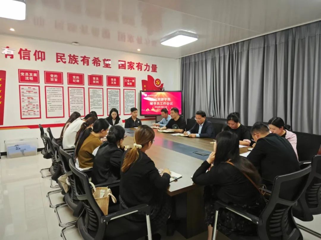 为进一步加强学生日常管理工作,提升学管工作成效,促进学院稳定发展,10月14日下午,文化旅游学院在五区党员活动室召开辅导员工作会议。学院党总支书记展贤东、副院长于慧娟、李炯,学管办主任普俊、综合办主任石永丽,23级、24级全体辅导员参加会议。会议由普俊主持。