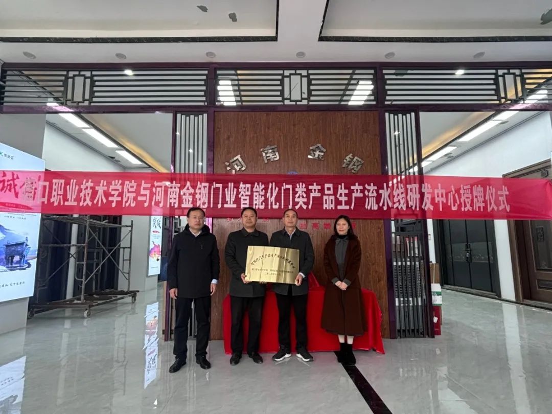 在热烈的掌声中,史丽珍与河南金钢门业代表共同为“智能化门类产品生产流水线研发中心”揭牌,标志着双方合作关系的正式建立。