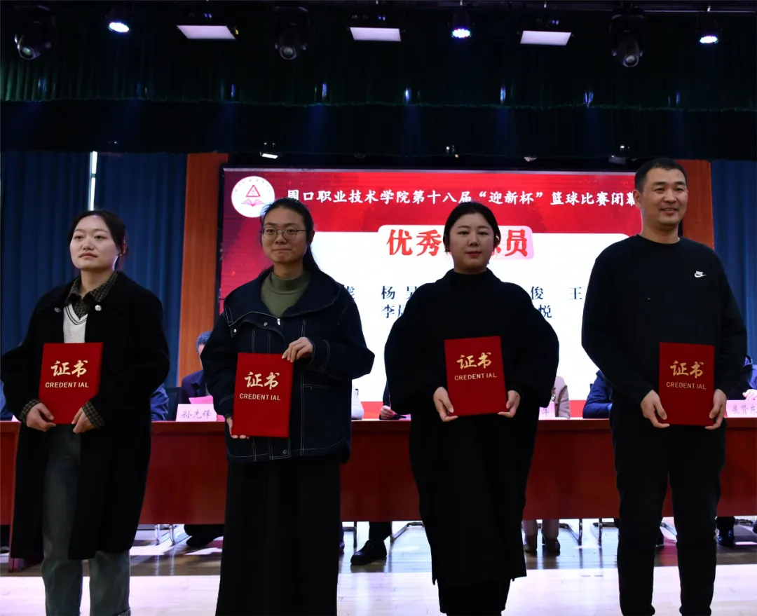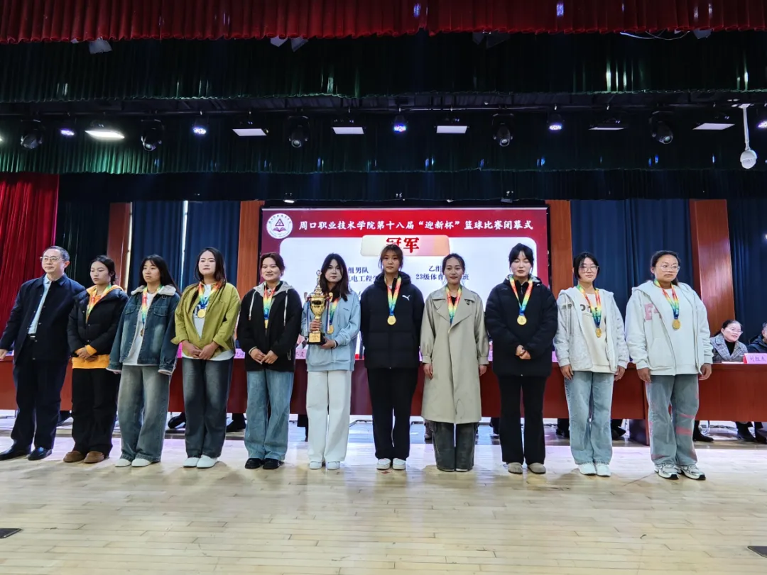 周口职业技术学院第十八届“迎新杯”篮球赛闭幕颁奖仪式于2024年11月21日下午3:00在体育馆举行。文化旅游学院党总支书记展贤东、学管办主任普俊以及获奖运动员参加此次活动。