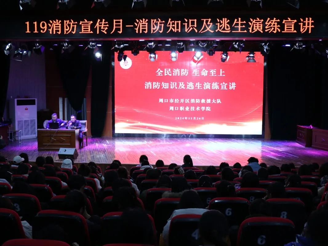为加强我院师生的消防安全意识,掌握消防安全知识,提高应对突发事件的应急应变和协调配合能力,11月26日下午,周口市经开区消防救援大队在砺德厅开展“全民消防 ,生命至上” 消防知识及逃生演练宣讲。文化旅游学院教师和学生参与本次演练宣讲。