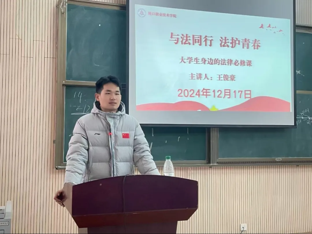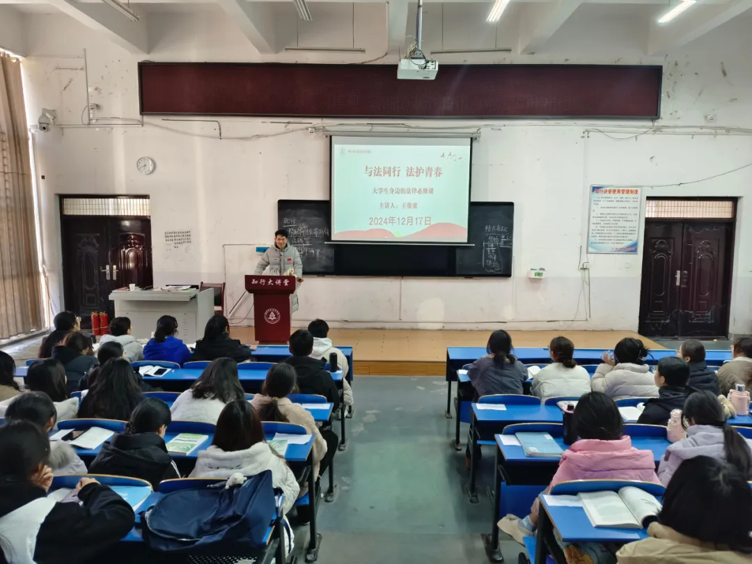 法纪严则国家安,律法行而民心悦。为深入学习贯彻习近平法治思想和习近平总书记关于法治的重要论述,加强文化旅游学院学生的法治教育,提高学生的法律意识和法律素养,文化旅游学院于12月17日上午在六区一楼多功能教室召开了《与法同行、法护青春——大学生身边的法律必修课》专题讲座。本次讲座邀请河南大学法学硕士王俊豪为我院学生做专题培训。