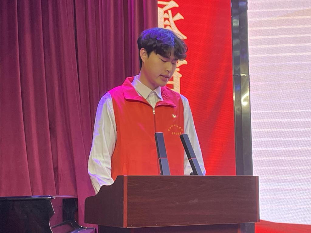 周口职业技术学院优秀青年志愿者代表郭启航同学发表演讲,号召全体青年志愿者积极行动起来,以“奉献 、友爱、互助、进步”的志愿精神投入到学雷锋志愿服务活动中去,用实际行动传承雷锋精神,展现新时代青年的责任与担当。