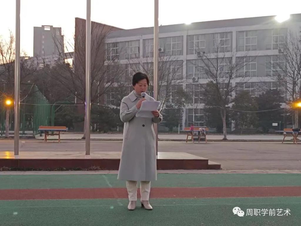 新学期,新起点,新征程,2月20日,学前与艺术教育学院在操场隆重举行2023年春季新学期首次升旗仪式。副校长李秀萍出席仪式并讲话,学生处处长刘冬霞,学前与艺术教育学院全体领导班子成员、辅导员及学生参加升旗仪式,仪式由学院党总支书记王春生主持。