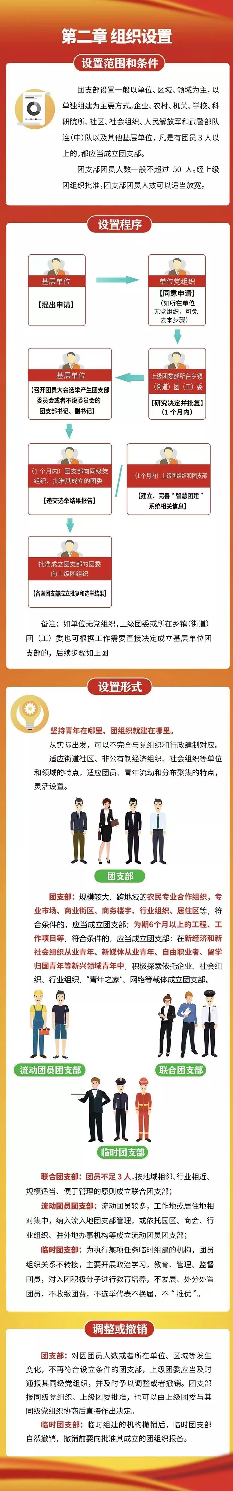 第五条 坚持青年在哪里、团组织就建在哪里,团支部设置形式应当从实际出发,可以不完全与党组织和行政建制对应。适应街道社区、非公有制经济组织、社会组织等单位和领域的特点,适应团员、青年流动和分布聚集的特点,灵活设置团支部。