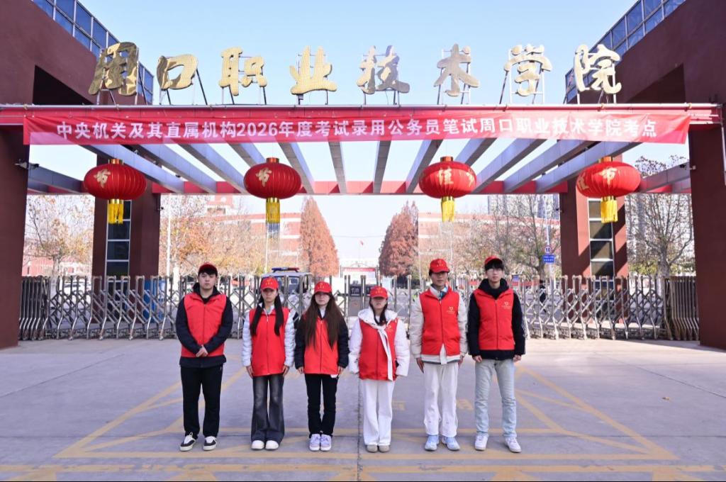 11月30日,中央机关及其直属机构2026年度考试录用公务员笔试在周口职业技术学院开元校区举行。为弘扬“奉献、友爱、互助、进步”志愿精神,校投壶比赛游戏规则个人赛组织6名志愿者开展助考志愿服务活动,为考生营造温馨环境,用行动践行雷锋精神。
