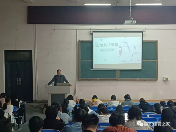 为增强同学们的安全防范意识,提高同学们在疫情下的安全防范能力,2022年11月10日,经济与管理学院班子成员在党总支书记陈鹏带领下深入班级与在校辅导员共同召开疫情防控班会。
