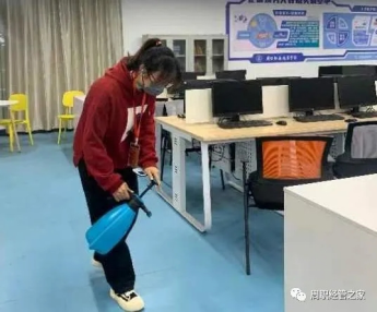 为坚决打好新型冠肺炎疫情防控阻击战,让同学们能有一个干净舒适、健康卫生的学习生活环境,2022年11月9日下午,我院党总支书记陈鹏,院长袁向华,学管办主任赫莉娟以及在校辅导员带领学生们开展卫生大扫除。对教室和宿舍等区域实施全面清扫及消杀工作。