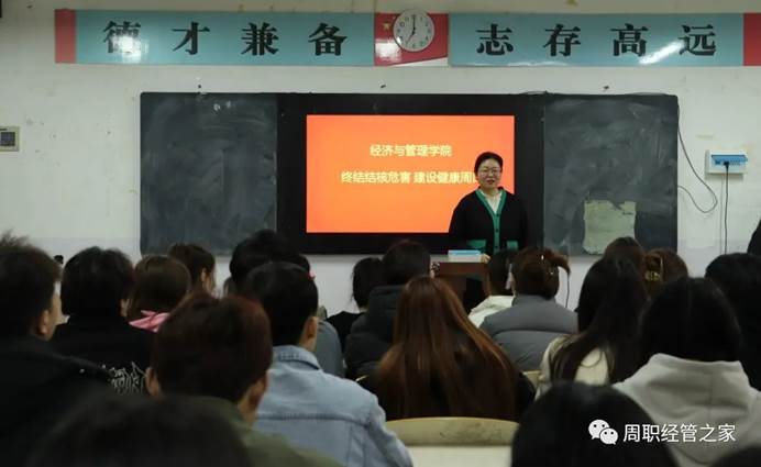 为广泛宣传肺结核防治知识,提高师生防病意识,防止肺结核在校园的传播,3月23日晚上,经济与管理学院在4203开展以“终结结核危害 建设健康周口”为主题的肺结核防治健康知识宣传活动。会议由副院长郑文娟主持。21、22级在校学生参与。