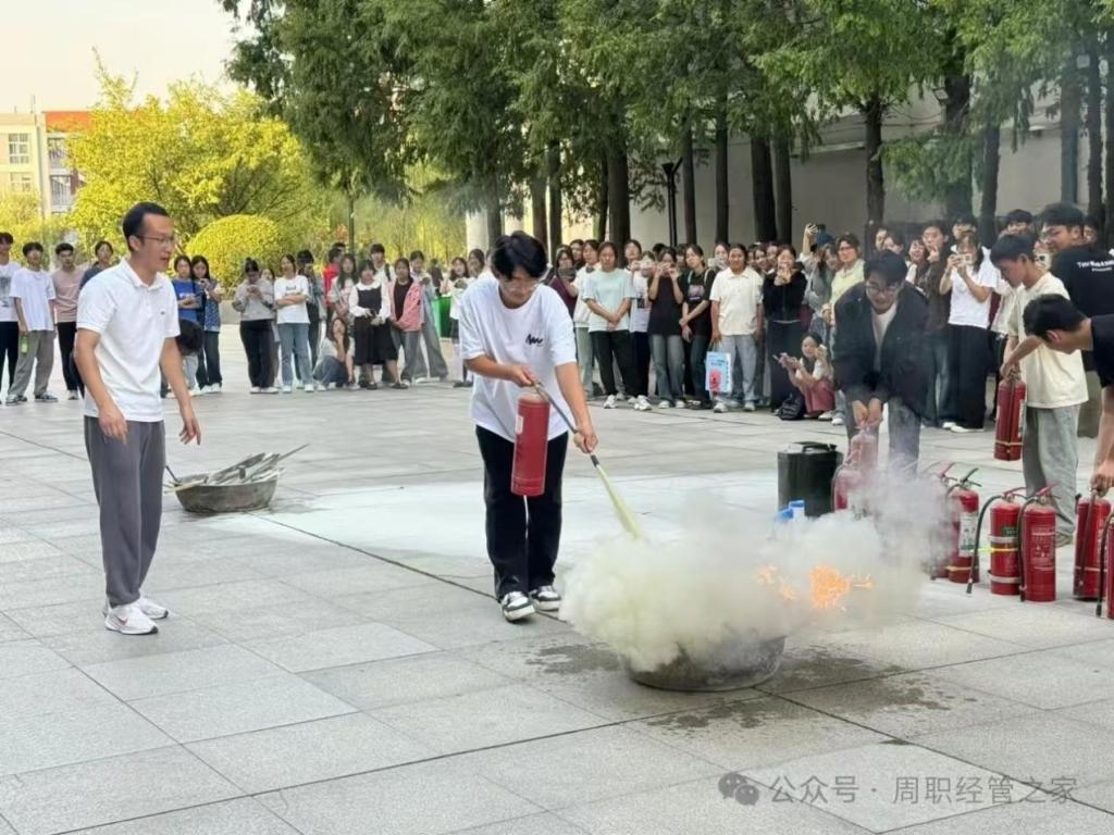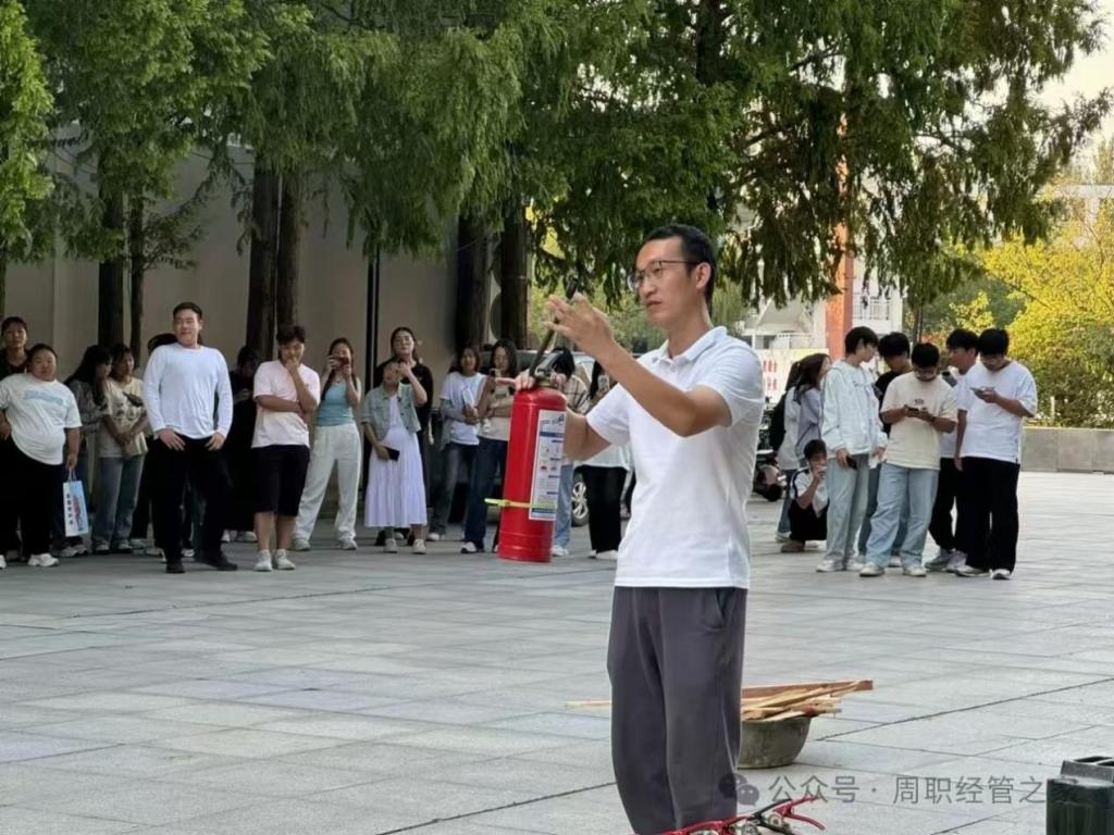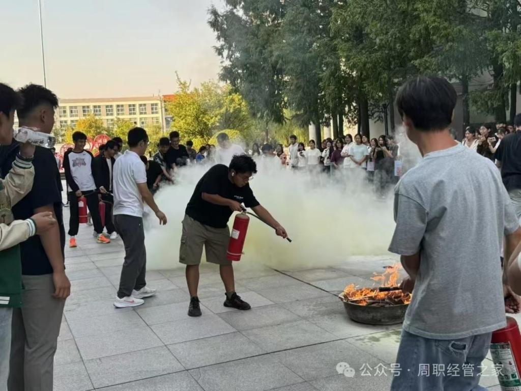 为增强学生对火险发生时的自我保护能力,提高防火安全意识,使学生掌握在火灾中的自救、逃生和疏散能力,提高学生紧急避险、自救自护和应变能力,周口职业技术学院于9月25日在励德厅前开展消防演练,经济与管理学院学生代表积极参与。
