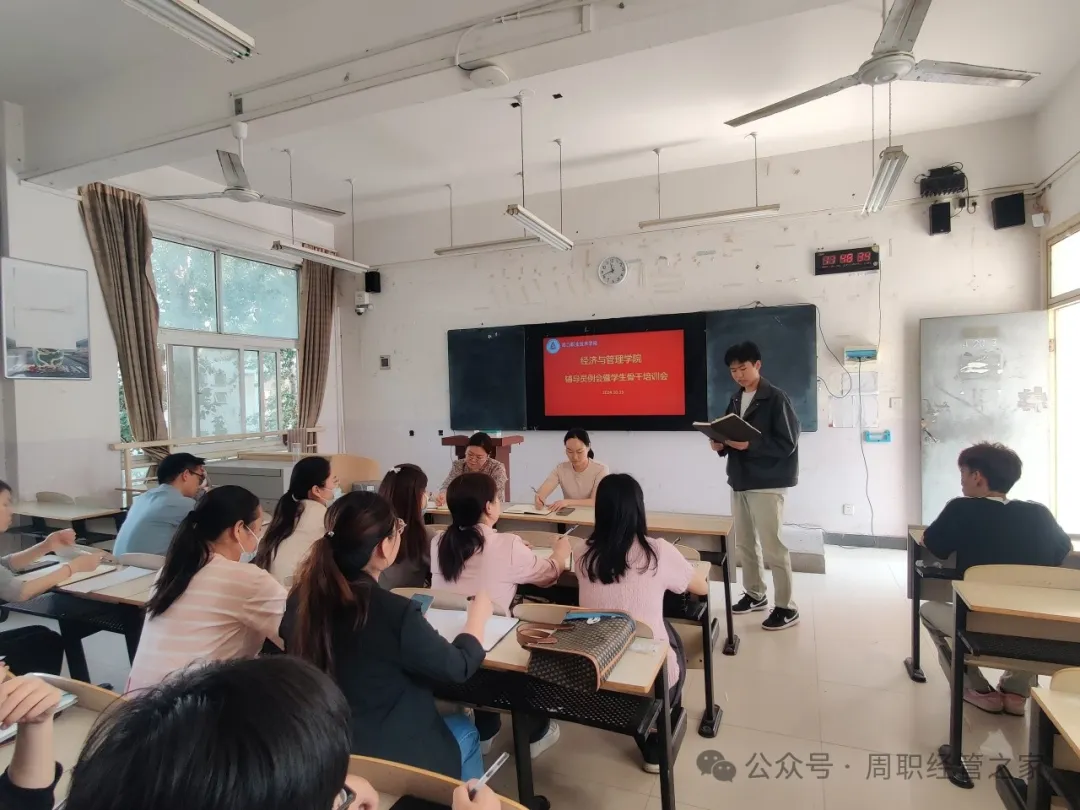 为进一步提高学生干部队伍的综合素质能力,充分发挥学生干部的思想引领和模范带头作用,培养学生干部求真、务实、争先的工作作风,加强学生干部的团结协作和自我管理能力,切实将学院各项工作落到实处,10月15日上午,经济与管理学院召开辅导员例会暨学生骨干培训会。会议由学管办主任杨璐璐老师主持,副院长郑文娟以及23、24级辅导员参加会议。