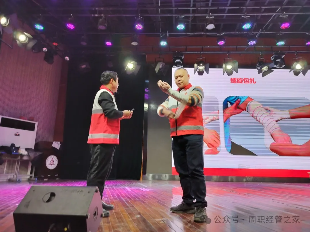 培训活动着重于理论知识的深化与急救技能的实操演练。在理论课程中,深入探讨了红十字运动的起源、发展历程以及其核心的七项基本原则。在实践环节,由专业导师进行心肺复苏术的分步骤演示,并对按压位置、频率、深度等关键操作细节进行了详尽讲解。此外,培训还包括创伤包扎技巧的教学,涵盖了针对不同部位、不同程度伤口的包扎方法,以及绷带缠绕和三角巾使用技巧等。通过这些内容,学员们的急救技能得到了全面提升。