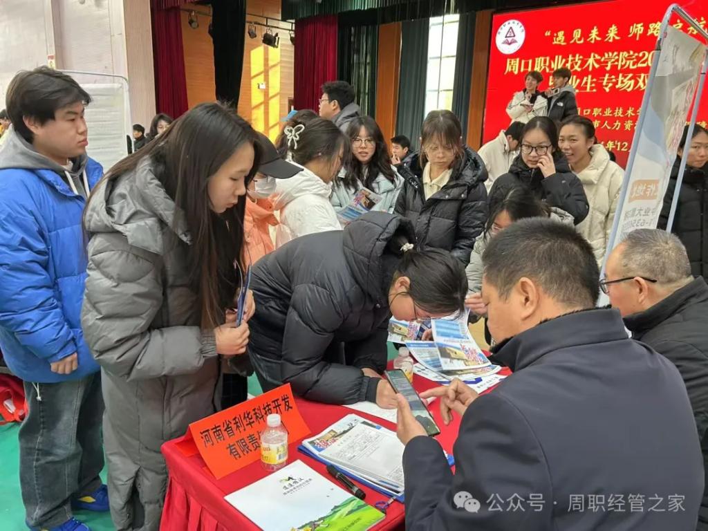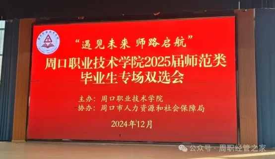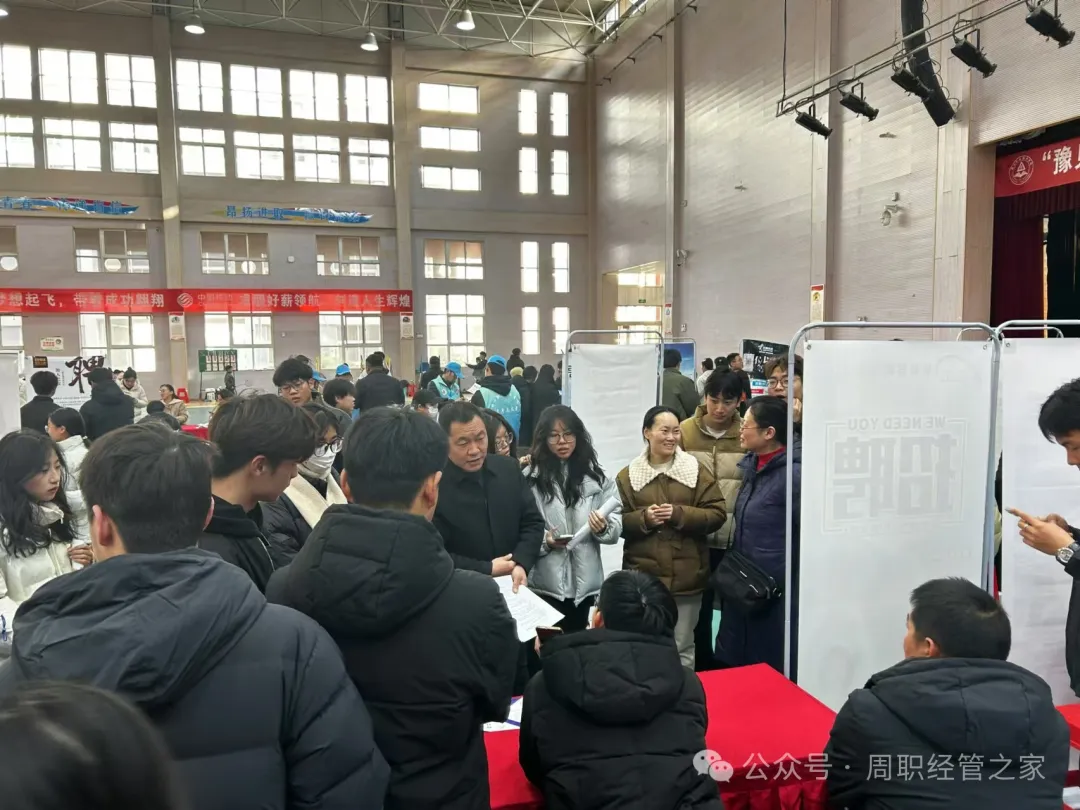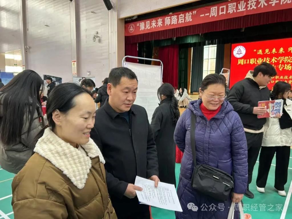 为搭建就业桥梁,推动教育资源整合,促进人才流动与优化,周口职业技术学院于2024年12月14日在开元校区体育馆开展“周口职业技术学院2025届师范类毕业生专场双选会”。经济与管理学院学子积极参加此次活动,党总支书记陈鹏、副院长郑文娟及学管办主任杨璐璐到场参加活动。