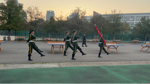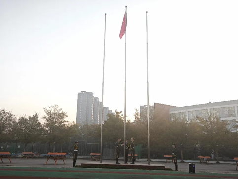 随着高豪杰宣布升旗仪式正式开始,在全体师生的注目礼下,英姿飒爽的国旗护卫队队员迈着铿锵的步伐护送着鲜艳的五星红旗进场来到国旗台前。升国旗,奏国歌,向国旗行注目礼!”伴随着嘹亮的歌声,五星红旗冉冉升起。全体师生肃穆敬礼,自豪与骄傲之情油然而生。