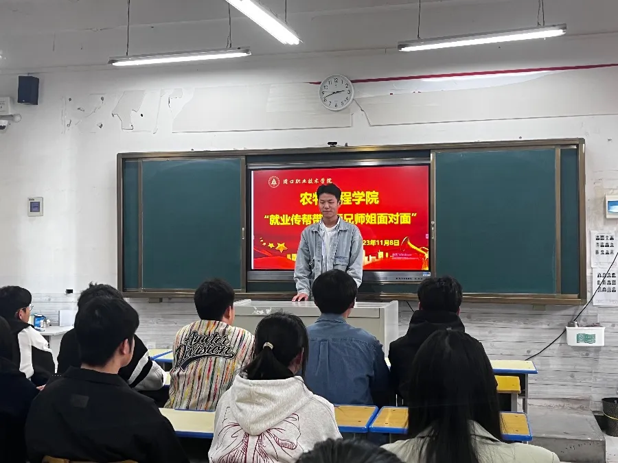 为加强学院学风建设,帮助大一新生们更好适应大学生活,2023年11月9日下午两点,院团学干部组织开展“就业传帮带·学长学姐面对面”主题团日活动,让学长分享经验,解答疑惑。