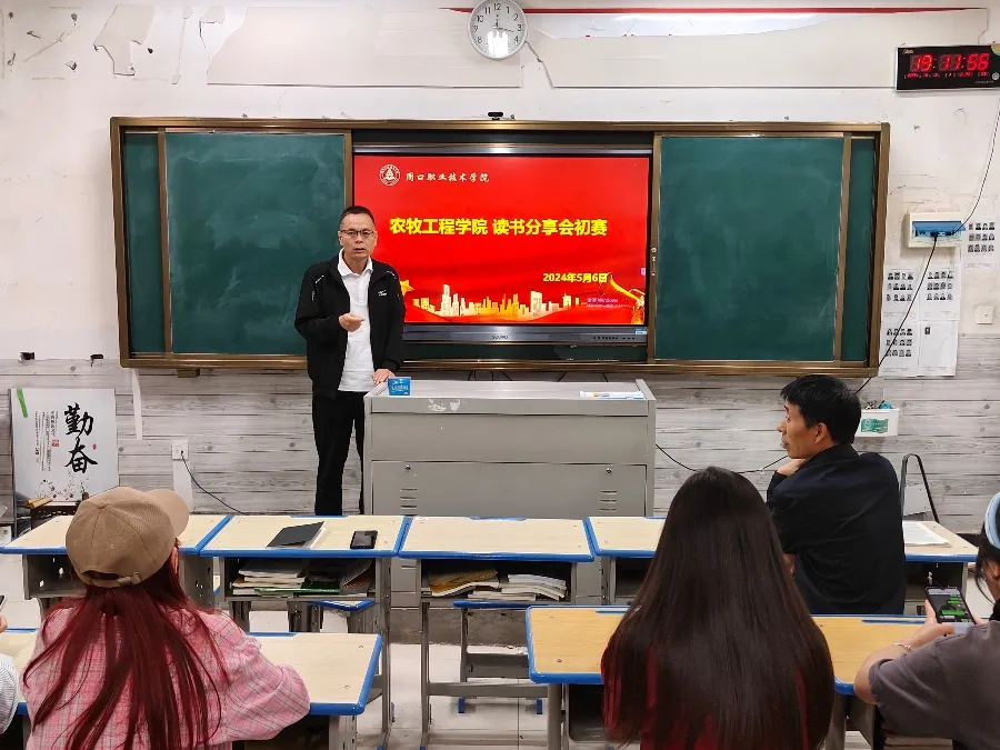 为巩固拓展学习贯彻习近平新时代中国特色社会主义思想主题教育成果,营造浓厚校园书香氛围,4月30日,农牧工程学院在4128教室举行“书香校园 芬芳周职”读书分享会初赛。党总支书记王安、副院长王伟出席本次读书会。