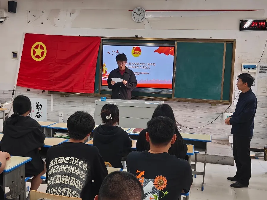 为纪念“五四运动” 105 周年,进一步弘扬五四精神,强化共青团仪式教育,增强共青团员的先进性和光荣感,展现广大团员青年积极向上、奋发有为的青春风采。5月6日,农牧工程学院在4128教室举行“青春向党 挺膺担当”新团员入团仪式。