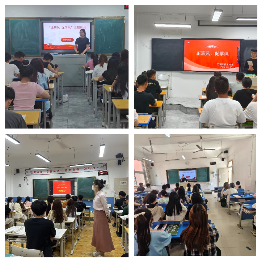 班会上,辅导员们多角度地教育学生珍惜校园时光,养成良好的学习习惯,为未来升学和就业做好充分准备,尤其强调了守纪律、强自律的意义。引导同学们积极参与到班级建设、良好班风学风培育工作中来,积极为学风建设助力。同时加强对班级的管理,确保班级纪律良好,做到无迟到、早退、无上课玩手机、打瞌睡现象出现,积极营造良好的学习环境。