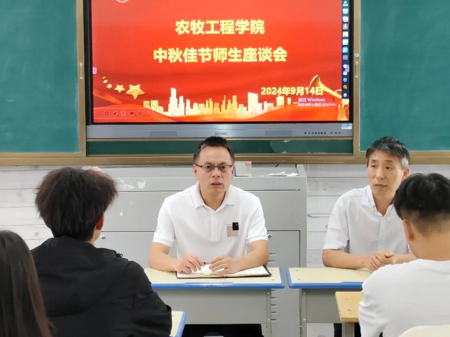 金秋送爽,丹桂飘香。为了让我院学生感受到节日的温暖和学院的关怀,9月14日,农牧工程学院特别组织了一场以“ 喜迎中秋,共话团圆”为主题的中秋佳节师生座谈会。党总支书记王安、副院长王伟出席会议。