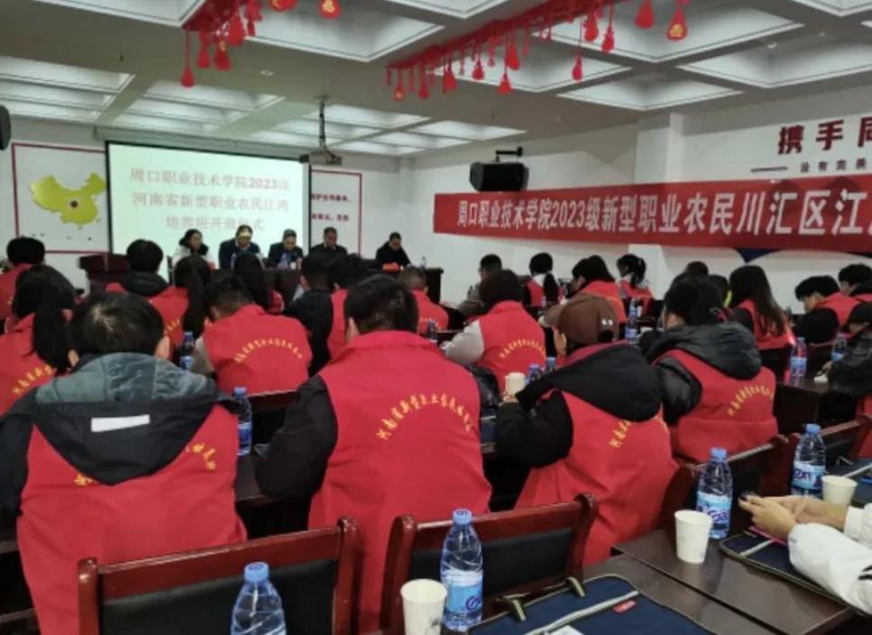 2023年11月19日,周口职业技术学院2023级新型职业农民江鸿教学班开班典礼周口市川汇区江鸿生态种植有限公司举行。周口职业技术学院副校长王隼、周口市川汇区江鸿生态种植有限公司董事长王春江、周口市川汇区江鸿生态种植有限公司财务部长时间、周口职业技术学院农牧工程学院党总支书记王安;周口职业技术学院农牧工程学院院长宋建华教授等相关同志出席,来自周口市川汇区江鸿生态种植有限公司的全体学员参加开班仪式。