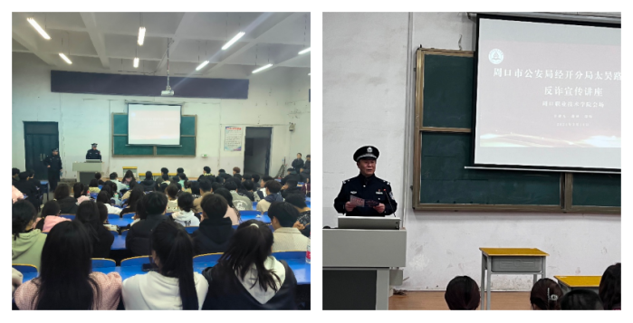 为增强学生预防电信诈骗的意识,预防和减少校园电信诈骗案件的发生。2024年3月14日农牧工程学院校警联动周口市公安局经开分局太昊路派出所在五区阶梯教室开展反诈宣传讲座。民警邵帅、蒋林,为学院师生宣传普及反诈知识。党总支书记王安、22、23级团学干部及班长、团支书参加讲座。
