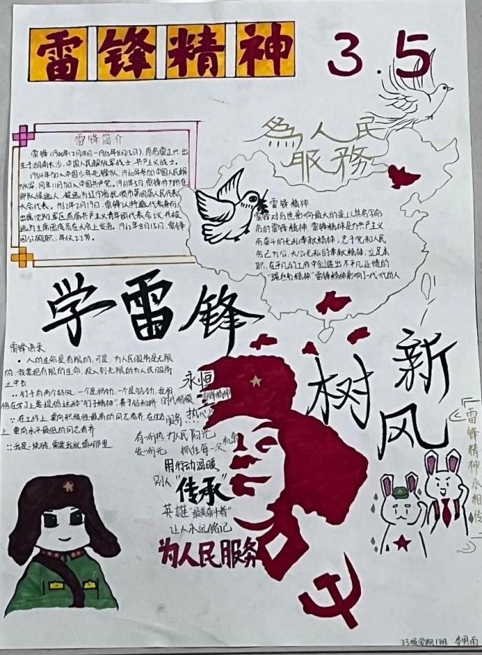 三月春风拂面来,雷锋月里暖意浓。为学习贯彻雷锋精神,提升农牧学子道德品质,农牧工程学院开展以“弘扬服务理念,践行雷锋精神”为主题的手抄报活动,引领同学们深入学习雷锋精神,争做新时代新青年。