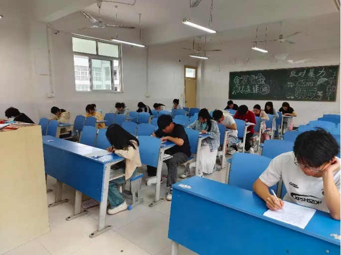 考试过程中,同学们端坐于桌前,从容作答,思维敏捷,现场纪律也保持良好,充分展现了大学生的风采和魅力。