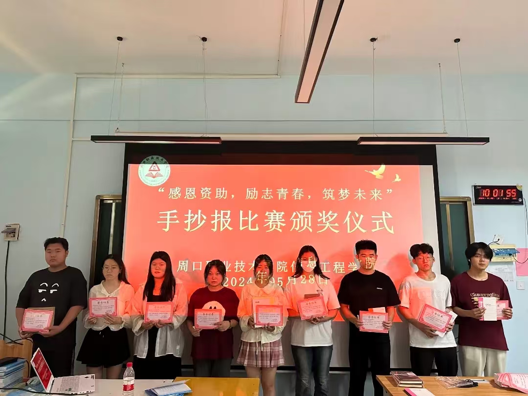 为引导信息工程学院学子深入了解国家学生资助政策,鼓励家庭经济困难学生克服困难、。自强自立、心怀感恩之心。周口职业技术学院信息工程学院学院举办了“感恩资助,励志青春,筑梦未来”主题手抄报比赛活动。