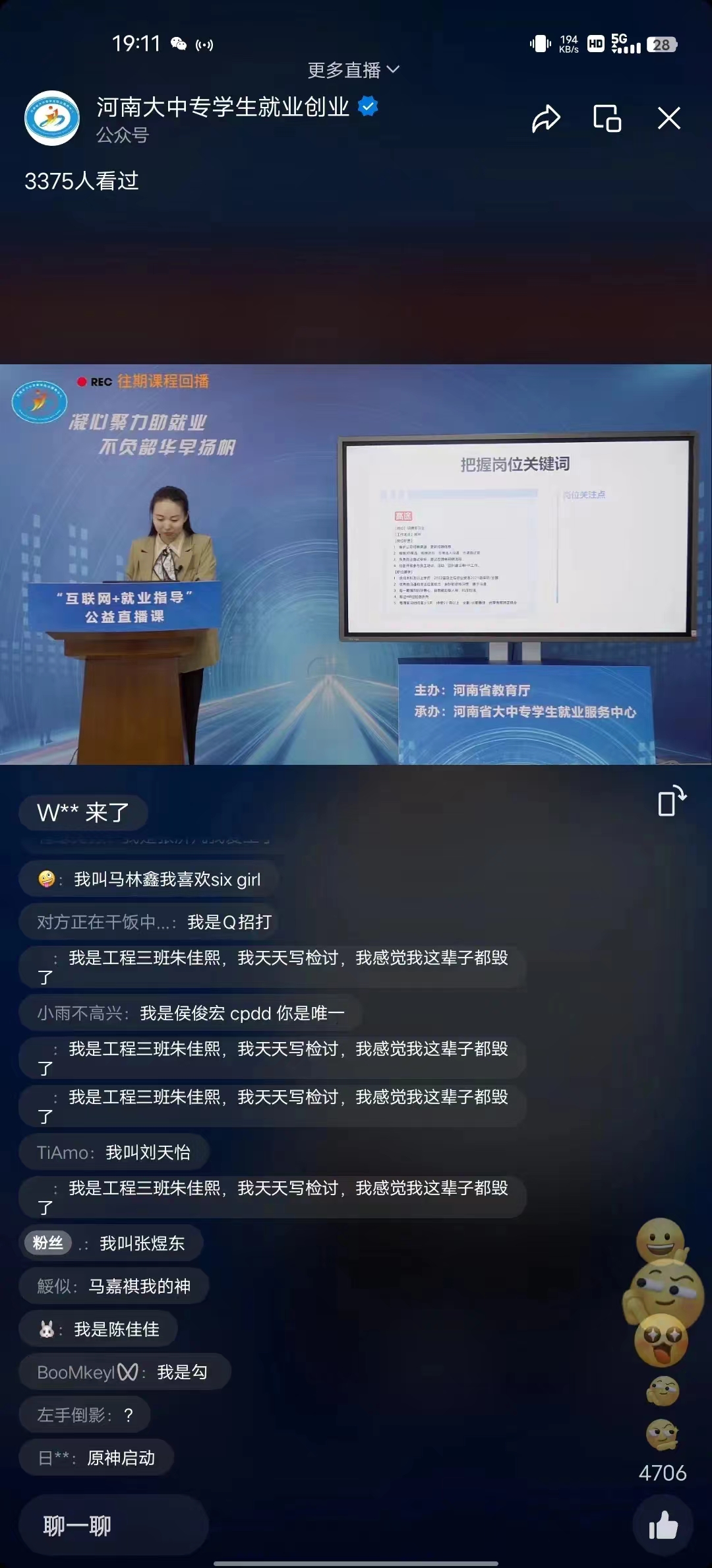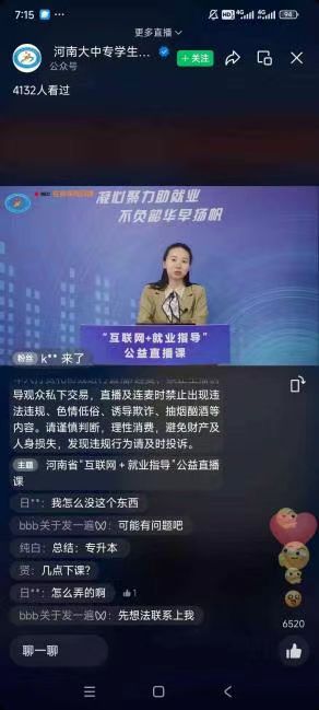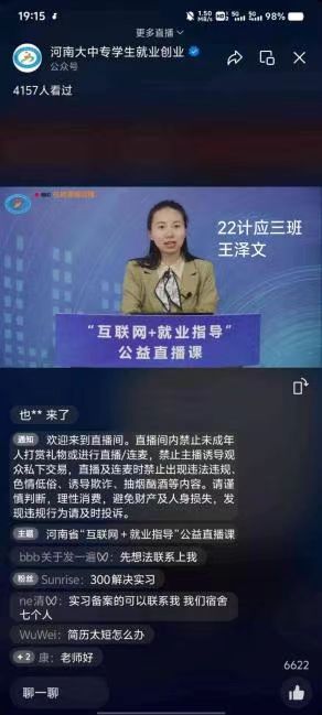 周口职业技术学院信息工程学院组织学生观看“互联网+就业指导”公益直播课