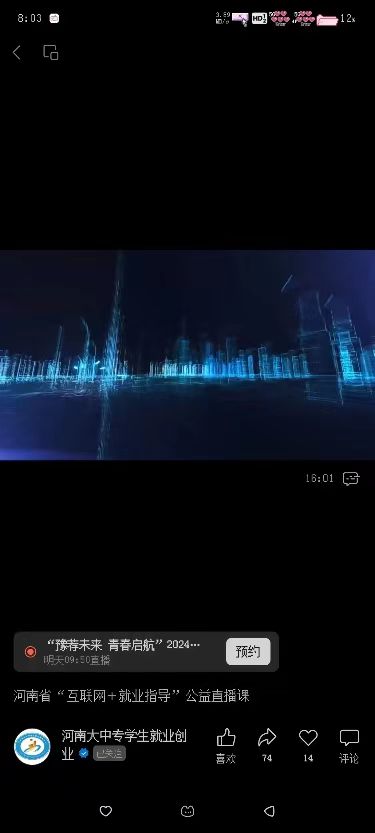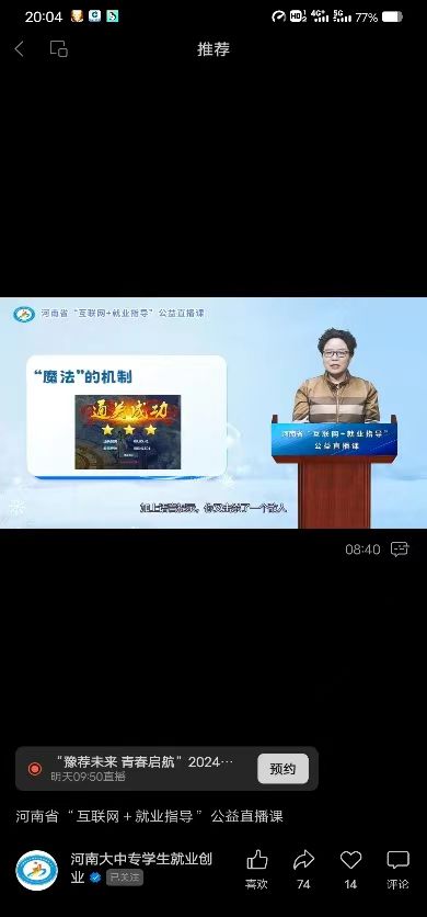为引导大学生调整就业心态,树立积极的择业就业观,随着高校扩招,就业竞争日益激烈,大学生就业成为社会关注的热点问题。为了帮助大学生以正确的人生观、价值观、道德观和行为规范参与求职择业活动,增强社会适应能力,同时,帮助大学生树立正确的择业目标,掌握正确的求职技巧,解决求职过程中出现的问题,以及如何正确面对就业问题,“凝心聚力助就业,不负韶华早扬帆”用魔法打败魔法大学生就业心理调适,信息工程学院组织全体在校学生于6月11晚上19:00观看河南省“互联网+就业指导”公益直播课。