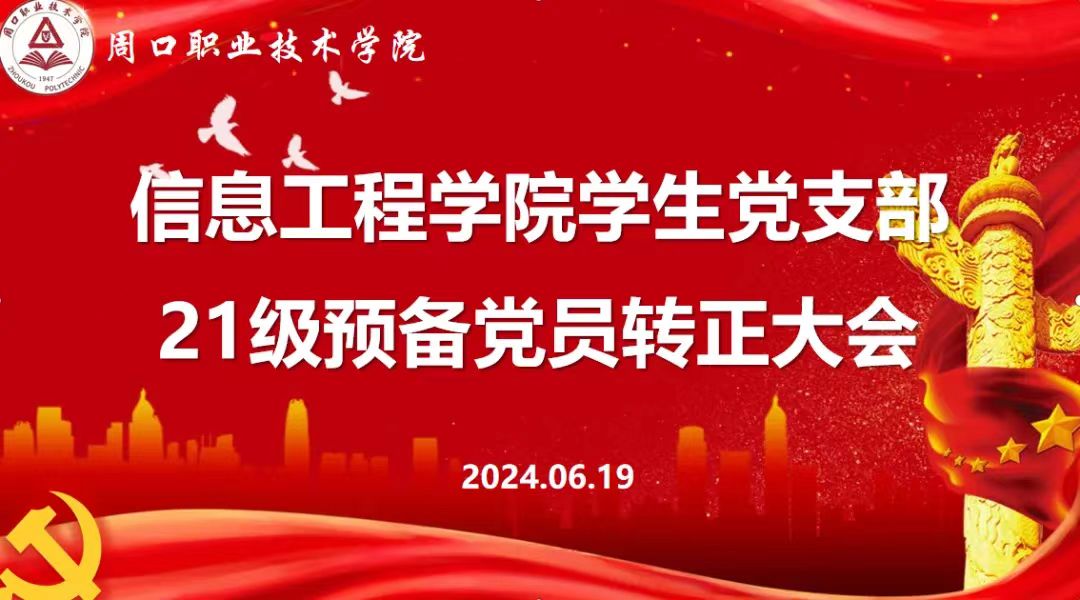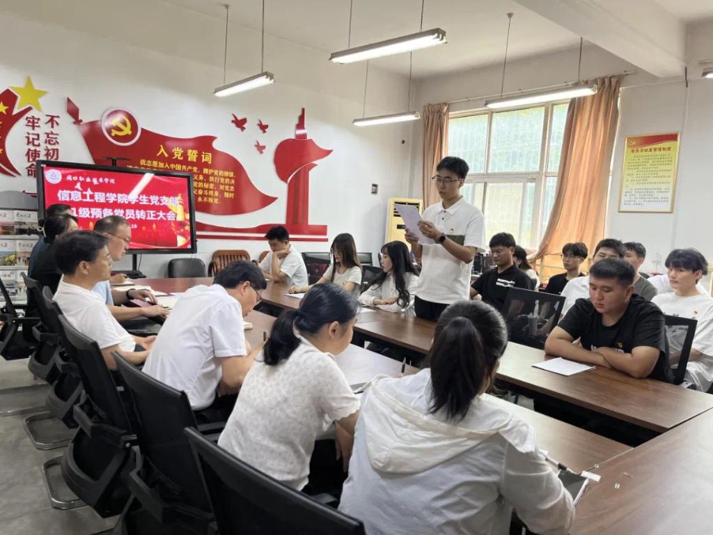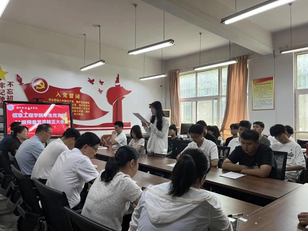 根据党员发展工作计划,并经上级党组织预审同意,2024年6月19日,在学院6140教室,信息工程学院召开21级学生预备党员转正大会,对陈乾坤、张艺卓等19名学生预备党员发展为中共正式党员进行讨论和表决。党支部书记宋良鹤,党支部副书记、院长黄宇达,学生支部书记楚书来等学院全体班子成员、学生支部成员及各位学生入党介绍人、本次拟转正的预备党员参加了本次会议,转正大会由学生支部书记楚书来主持。