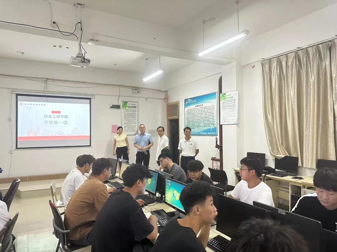 为加强新学期学生管理,保障学生安全,同时也为了深入了解学生学习、生活动态,91日晚,信息工程学院党总支书记宋良鹤、院长黄宇达、副院长楚书来、学管办主任张矿伟一行人深入晚自习教室进行走访,目的是及时了解学生的学习状态,并给予指导。