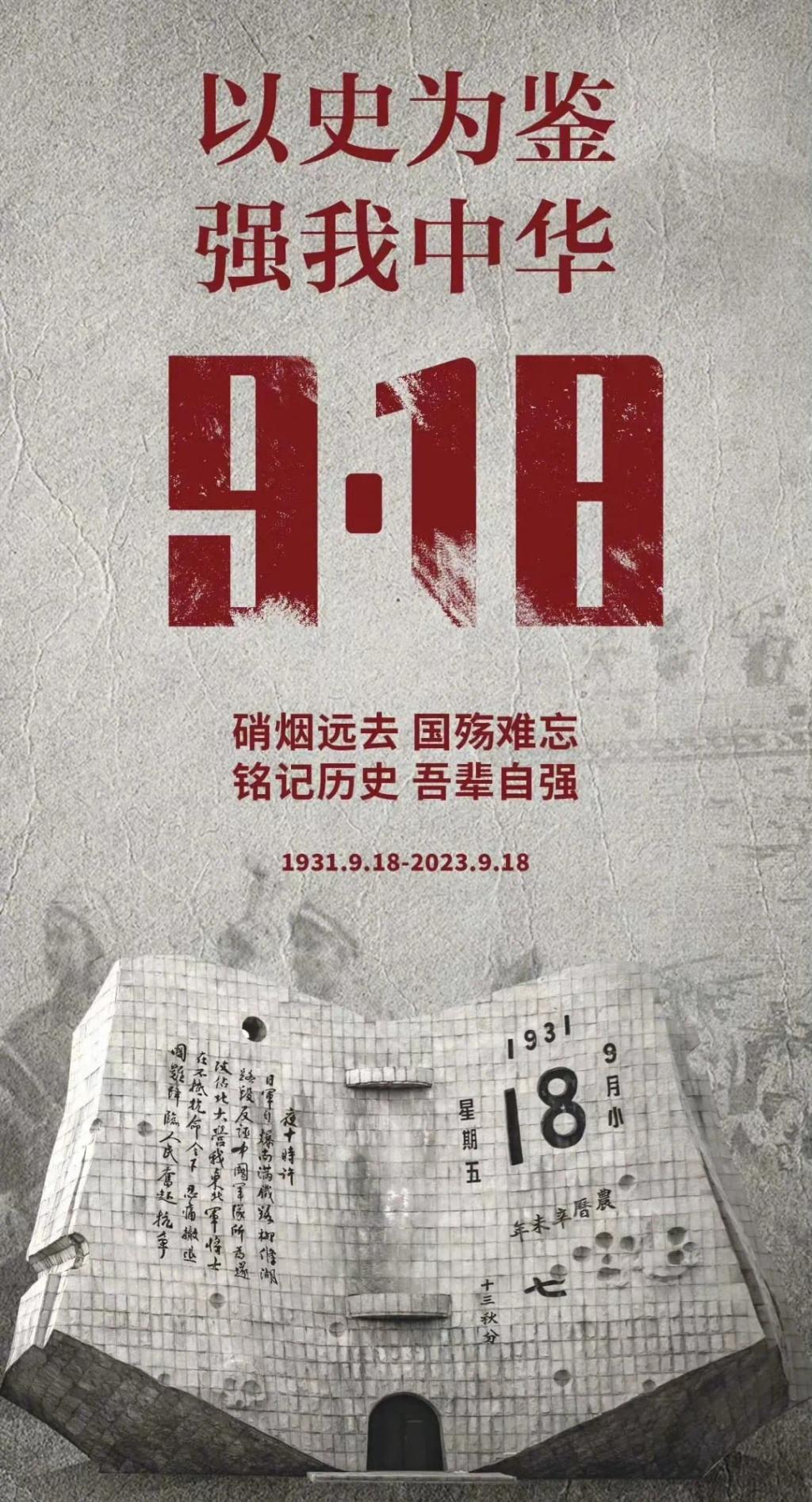 9.18”,是国耻日,也是中华民族觉醒日。中华民族在这一天彻底觉醒,经过14年不屈不挠的惨烈抗战,中国人民最终赢得了抗击日本帝国主义侵略的伟大胜利,让和平的阳光再次普照大地。