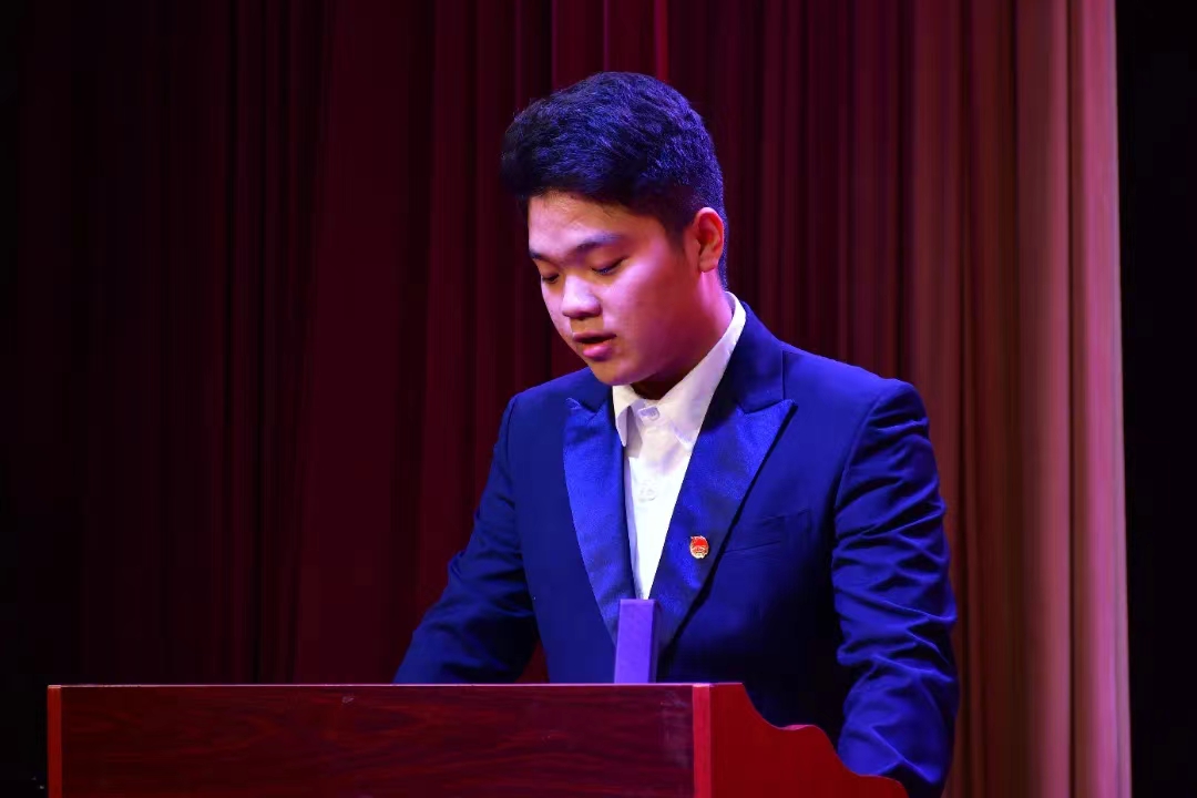 大会进行第二项,全体参与竞选的学生骨干依次上台进行竞选演讲。